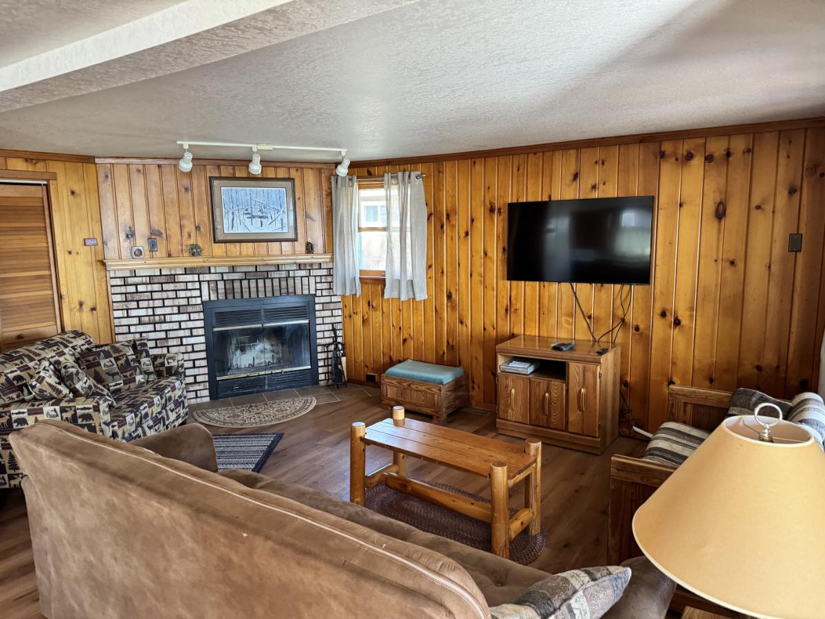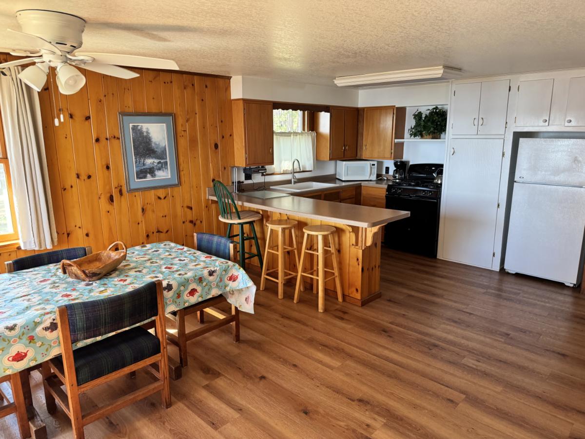 Roomy two bedroom knotty pine lakefront home. Large kitchen and dining room